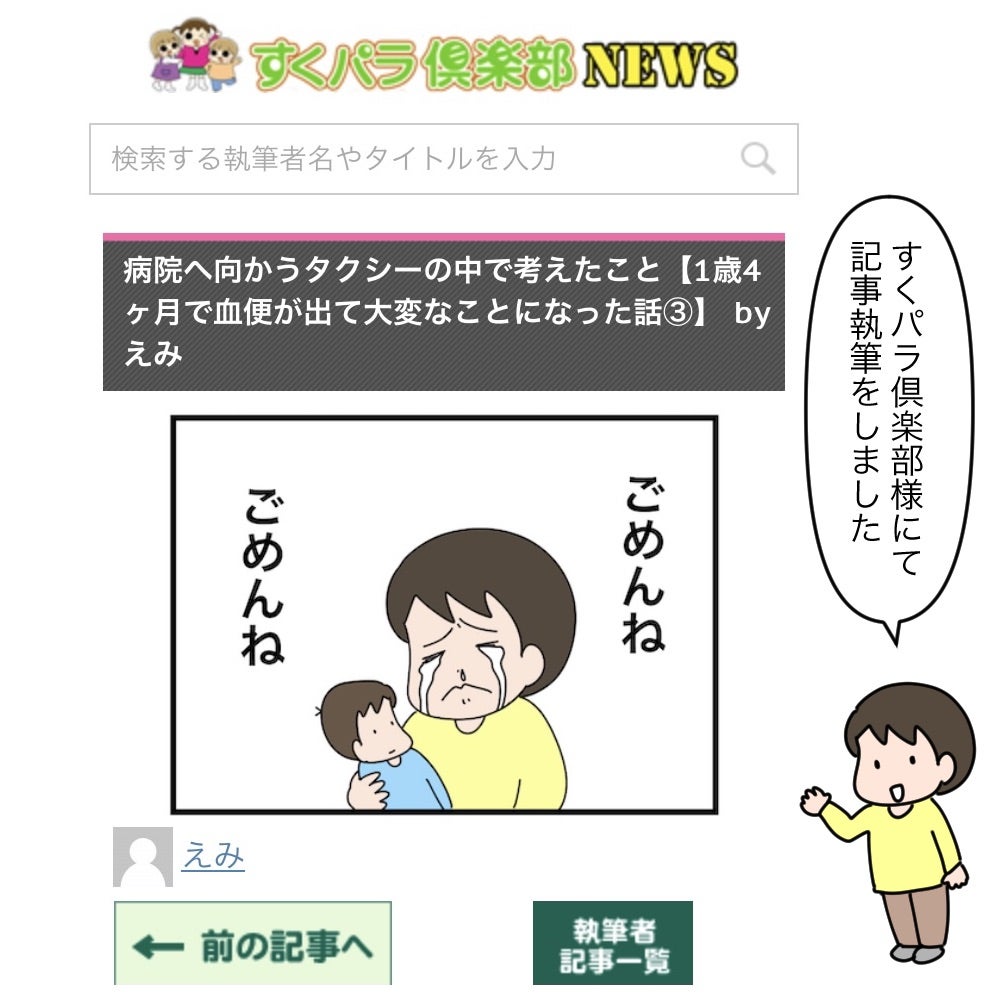 1歳4ヶ月で血便が出て大変なことになった話③(すくパラ倶楽部記事掲載) 2021.07.26 母のあれこれ いつも読んでいただき、有難うございます。 前回の続きです。 ことあと、まさかの展開となります! こちらから読めます 0 コメントはこちら 同じカテゴリの記事 大事な予定 正しい情報が正しい判断を生む あーちゃん保育園決まりました お母さんの子どもの頃の夢は? 夫婦円満 我が家のお金管理法 その3 夫婦円満 我が家のお金管理法 その2 夫婦円満 我が家のお金管理法 その1 5年間、毎月寄付を継続してみたら・・ 我が家の家族会議(ウーマンエキサイト様にて紹介) お腹がぽよん お金の教育 番外編 小学生が貯金箱と友情を失った話 その6 お金の教育 番外編 小学生が貯金箱と友情を失った話 その5 お金の教育 番外編 小学生が貯金箱と友情を失った話 その4 お金の教育 番外編 小学生が貯金箱と友情を失った話 その3 お金の教育 番外編 小学生が貯金箱と友情を失った話 その2 夏休み中盤戦 夫に聞いてみた!子どもの頃どうだった? 1歳4ヶ月で血便が出て大変なことになった話③(すくパラ倶楽部記事掲載) 1歳4ヶ月で血便が出て大変なことになった話②(すくパラ倶楽部記事掲載) そうだ!夫に聞いてみよう!Q&Aコーナー 夫婦間で意思疎通ができません9 そうだ!夫に聞いてみよう!Q&Aコーナー 夫婦間で意思疎通ができません8 そうだ!夫に聞いてみよう!Q&Aコーナー 夫婦間で意思疎通ができません7 そうだ!夫に聞いてみよう!Q&Aコーナー 夫婦間で意思疎通ができません6 そうだ!夫に聞いてみよう!Q&Aコーナー 夫婦間で意思疎通ができません5 そうだ!夫に聞いてみよう!Q&Aコーナー 夫婦間で意思疎通ができません4 そうだ!夫に聞いてみよう!Q&Aコーナー 夫婦間で意思疎通ができません3 そうだ!夫に聞いてみよう!Q&Aコーナー 夫婦間で意思疎通ができません2 そうだ!夫に聞いてみよう!Q&Aコーナー 夫婦間で意思疎通ができません1 今さらですが夫の紹介 シャッターチャンスを逃し気味 宅建試験 受験してきました 試験勉強・・よぎる不安・・ 宅建、受験します さよならパソコン ようこそiPad 汗ばむ季節の癒し 赤ちゃんとマスク 夫婦円満のルーティン 恐怖の出来事 トップシークレット 通常運転 再開! コロナ休校 真っ只中 ついに家を建てることになった話 その⑤ ついに家を建てることになった話 その④ ついに家を建てることになった話 その③ ついに家を建てることになった話 その② ついに家を建てることになった話 その① 前の記事 ゲームで感じる子どもの成長 その2 2021.07.26 次の記事 ゲームで感じる子どもの成長 その3 2021.07.27 アプリなら通知ですぐ読める! NAPBIZブログ