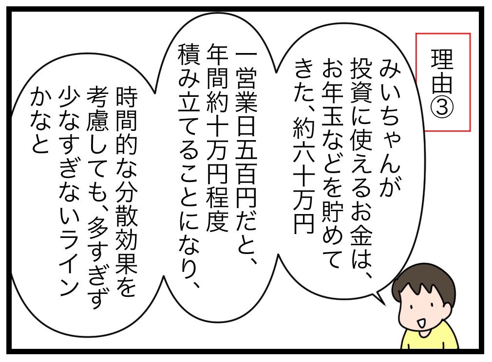 お金の教育 小学2年生が投資を始めた話 実践編 その1 2022.01.18 子育て いつも読んでいただき、有難うございます。 広告 広告 0 コメントはこちら 同じカテゴリの記事 「家族で議論」がおもしろい! たたくなら… 何十年かぶりにプラネタリウムに行ったらとってもよかった話 「痛いの痛いの飛んでいけ」の効果的なやり方 国語の読解問題の採点でモヤモヤした話 その3 国語の読解問題の採点でモヤモヤした話 その2 国語の読解問題の採点でモヤモヤした話 その1 2歳児とお出かけ待ち時間に便利アイテム 心からオススメ!おうち勉強法の本 子どもが小学生になってまず覚えさせたこと 実録!小学生のいる共働き家庭の夏休みの過ごし方 その12 実録!小学生のいる共働き家庭の夏休みの過ごし方 その11 実録!小学生のいる共働き家庭の夏休みの過ごし方 その10 実録!小学生のいる共働き家庭の夏休みの過ごし方 その9 実録!小学生のいる共働き家庭の夏休みの過ごし方 その8 子どもの「ウソ」をやめさせたい!一発で効いた母の一言 実録!小学生のいる共働き家庭の夏休みの過ごし方 その7 実録!小学生のいる共働き家庭の夏休みの過ごし方 その6 実録!小学生のいる共働き家庭の夏休みの過ごし方 その5 小学2年生が1,000円のオムライスセットを販売!本物のお店も経営できる? 実録!小学生のいる共働き家庭の夏休みの過ごし方 その4 実録!小学生のいる共働き家庭の夏休みの過ごし方 その3 実録!小学生のいる共働き家庭の夏休みの過ごし方 その2 実録!小学生のいる共働き家庭の夏休みの過ごし方 その1 小学2年生がカフェに挑戦。ものすごく頑張ったのに利益ご少ない!? 算数とアスパラベーコン 英語を勉強する前に知っておきたかったことを子どもに伝えてみた話 その5 英語を勉強する前に知っておきたかったことを子どもに伝えてみた話 その4 小学2年生が家庭内起業で大儲け!小さな仕事は頑張らなくなる? 英語を勉強する前に知っておきたかったことを子どもに伝えてみた話 その3 英語を勉強する前に知っておきたかったことを子どもに伝えてみた話 その2 英語を勉強する前に知っておきたかったことを子どもに伝えてみた話 その1 家族で漢字検定を受検しました その7 小学2年生の家庭内起業。雇ったアルバイトが途中で逃げ出した!? 家族で漢字検定を受検しました その6 小学2年生が家庭内起業で初めて出した利益は1847円。客も店もみんなハッピーに! 家族で漢字検定を受検しました その5 家族で漢字検定を受検しました その4 家族で漢字検定を受検しました その3 小学2年生のおうち起業。7歳児が2時間半かけて一人で作ったランチが凄かった!(お金の教育26) 家族で漢字検定を受検しました その2 家族で漢字検定を受検しました その1 小学2年生が経営するレストラン。ランチの値段決めが予想以上に難しかった!! 空前の日本史ブーム到来!! 選挙の投票に子ども達と行った話 その4 選挙の投票に子ども達と行った話 その3 選挙の投票に子ども達と行った話 その2 小学2年生の家庭内起業。レストランのランチ価格がとんでもないことに!(お金の教育24) 選挙の投票に子ども達と行った話 その1 小学2年生が家庭内起業!!おうちレストラン、始めました(お金の教育23) 自主学ノートで楽しく学ぼう その5 自主学ノートで楽しく学ぼう その4 自主学ノートで楽しく学ぼう その3 小学2年生がおうちでレストラン経営にチャレンジ!? お金の教育22 自主学ノートで楽しく学ぼう その2 自主学ノートで楽しく学ぼう その1 忙しくてもイライラしても、愛が伝わる「魔法の言葉」(with online) キュンです!2歳児の言い間違い リビングで楽しく学ぶ地理 その3 ワーママ「ここぞ」の朝対応 その4 お金の教育21 学校斡旋の習字セットを買わないことで娘が学んだ「お金の使い方」 ワーママ「ここぞ」の朝対応 その3 ワーママ「ここぞ」の朝対応 その2 ワーママ「ここぞ」の朝対応 その1 お金の教育19 どうする⁉︎子どもの絵の具セット選び…大切なのは「自分で選択すること」だった 我が家のゲーセン事情 その3 我が家のゲーセン事情 その2 我が家のゲーセン事情 その1 お金の教育18 学校で使う絵の具セット「値段は妥当?」「親が買うのが当たり前?」 育休復帰の思わぬ壁 その16 育休復帰の思わぬ壁 その15 育休復帰の思わぬ壁 その14 育休復帰の思わぬ壁 その13 お金の教育17 大人でも難しい⁉︎5歳児が「お金をためて欲しいおもちゃを買う」経験が想像以上に… 育休復帰の思わぬ壁 その12 育休復帰の思わぬ壁 その11 育休復帰の思わぬ壁 その10 育休復帰の思わぬ壁 その9 お金の教育16 欲しい物のために頑張る5歳児!大きな目標が浪費ぐせを変えた!? 育休復帰の思わぬ壁 その8 育休復帰の思わぬ壁 その7 育休復帰の思わぬ壁 その6 育休復帰の思わぬ壁 その5 お金の教育15 さっきあったお金が、なぜもう無いのか?それはね…(with online) 育休復帰の思わぬ壁 その4 育休復帰の思わぬ壁 その3 育休復帰の思わぬ壁 その2 育休復帰の思わぬ壁 その1 古いデジカメの使い方 お金の教育14 子どもの