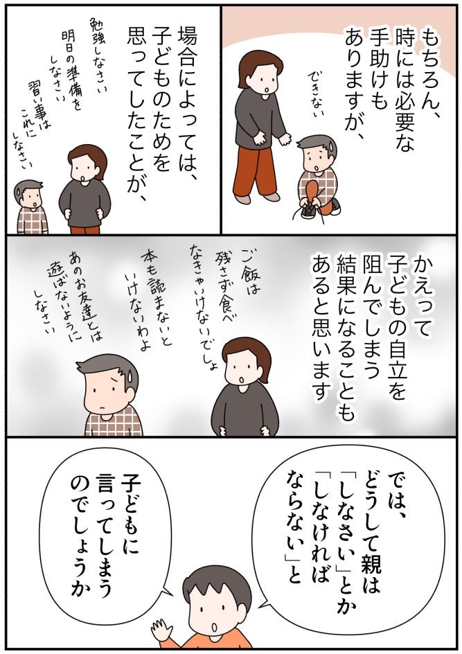 子どもが「主体的」になる親の関わり方⑩〜「しなければならない」から自由になる方法(前編)〜 2022.01.19 子育て いつも読んでいただき、有難うございます。 広告 ↓続きはこちら 子どもが「主体的」になる、親の関わり方⑩ 〜「しなければならない」から自由になる方法(前編)〜 – 共働きwith -講談社公式- 仕事も家庭もわたしらしく 子ども達が、これからの時代を幸せに生きていくために、何が必要なのでしょうか?今回は、子どもと接する親自身が、幸せに生きるヒントについて。今回ご紹介する「ある方法」を実践すれば、思考が変わって、見える世界が変わります!withonline.jp 0 コメントはこちら 同じカテゴリの記事 「家族で議論」がおもしろい! たたくなら… 何十年かぶりにプラネタリウムに行ったらとってもよかった話 「痛いの痛いの飛んでいけ」の効果的なやり方 国語の読解問題の採点でモヤモヤした話 その3 国語の読解問題の採点でモヤモヤした話 その2 国語の読解問題の採点でモヤモヤした話 その1 2歳児とお出かけ待ち時間に便利アイテム 心からオススメ!おうち勉強法の本 子どもが小学生になってまず覚えさせたこと 実録!小学生のいる共働き家庭の夏休みの過ごし方 その12 実録!小学生のいる共働き家庭の夏休みの過ごし方 その11 実録!小学生のいる共働き家庭の夏休みの過ごし方 その10 実録!小学生のいる共働き家庭の夏休みの過ごし方 その9 実録!小学生のいる共働き家庭の夏休みの過ごし方 その8 子どもの「ウソ」をやめさせたい!一発で効いた母の一言 実録!小学生のいる共働き家庭の夏休みの過ごし方 その7 実録!小学生のいる共働き家庭の夏休みの過ごし方 その6 実録!小学生のいる共働き家庭の夏休みの過ごし方 その5 小学2年生が1,000円のオムライスセットを販売!本物のお店も経営できる? 実録!小学生のいる共働き家庭の夏休みの過ごし方 その4 実録!小学生のいる共働き家庭の夏休みの過ごし方 その3 実録!小学生のいる共働き家庭の夏休みの過ごし方 その2 実録!小学生のいる共働き家庭の夏休みの過ごし方 その1 小学2年生がカフェに挑戦。ものすごく頑張ったのに利益ご少ない!? 算数とアスパラベーコン 英語を勉強する前に知っておきたかったことを子どもに伝えてみた話 その5 英語を勉強する前に知っておきたかったことを子どもに伝えてみた話 その4 小学2年生が家庭内起業で大儲け!小さな仕事は頑張らなくなる? 英語を勉強する前に知っておきたかったことを子どもに伝えてみた話 その3 英語を勉強する前に知っておきたかったことを子どもに伝えてみた話 その2 英語を勉強する前に知っておきたかったことを子どもに伝えてみた話 その1 家族で漢字検定を受検しました その7 小学2年生の家庭内起業。雇ったアルバイトが途中で逃げ出した!? 家族で漢字検定を受検しました その6 小学2年生が家庭内起業で初めて出した利益は1847円。客も店もみんなハッピーに! 家族で漢字検定を受検しました その5 家族で漢字検定を受検しました その4 家族で漢字検定を受検しました その3 小学2年生のおうち起業。7歳児が2時間半かけて一人で作ったランチが凄かった!(お金の教育26) 家族で漢字検定を受検しました その2 家族で漢字検定を受検しました その1 小学2年生が経営するレストラン。ランチの値段決めが予想以上に難しかった!! 空前の日本史ブーム到来!! 選挙の投票に子ども達と行った話 その4 選挙の投票に子ども達と行った話 その3 選挙の投票に子ども達と行った話 その2 小学2年生の家庭内起業。レストランのランチ価格がとんでもないことに!(お金の教育24) 選挙の投票に子ども達と行った話 その1 小学2年生が家庭内起業!!おうちレストラン、始めました(お金の教育23) 自主学ノートで楽しく学ぼう その5 自主学ノートで楽しく学ぼう その4 自主学ノートで楽しく学ぼう その3 小学2年生がおうちでレストラン経営にチャレンジ!? お金の教育22 自主学ノートで楽しく学ぼう その2 自主学ノートで楽しく学ぼう その1 忙しくてもイライラしても、愛が伝わる「魔法の言葉」(with online) キュンです!2歳児の言い間違い リビングで楽しく学ぶ地理 その3 ワーママ「ここぞ」の朝対応 その4 お金の教育21 学校斡旋の習字セットを買わないことで娘が学んだ「お金の使い方」 ワーママ「ここぞ」の朝対応 その3 ワーママ「ここぞ」の朝対応 その2 ワーママ「ここぞ」の朝対応 その1 お金の教育19 どうする⁉︎子どもの絵の具セット選び…大切なのは「自分で選択すること」だった 我が家のゲーセン事情 その3 我が家のゲーセン事情 その2 我が家のゲーセン事情 その1 お金の教育18 学校で使う絵の具セット「値段は妥当?」「親が買うのが当たり前?」 育休復帰の思わぬ壁 その16 育休復帰の思わぬ壁 その15 育休復帰の思わぬ壁 その14 育休復帰の思わぬ壁 その13 お金の教育17 大人でも難しい⁉︎5歳児が「お金をためて欲しいおもちゃを買う」経験が想像以上に… 育休復帰の思わぬ壁 その12 育休復帰の思わぬ壁 その11 育休復