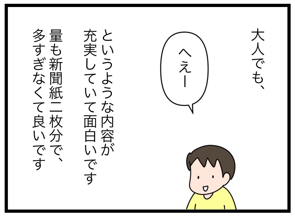 小学生新聞を定期購読してみた話 その1 2022.01.28 やってみた いつも読んでいただき、有難うございます。 広告 広告 0 コメントはこちら 同じカテゴリの記事 おすすめゲーム 3歳児も一緒に遊べるゲームはこれだ!! 留学生と暮らして見えてきた「日本」 その5 留学生と暮らして見えてきた「日本」 その4 留学生と暮らして見えてきた「日本」 その3 留学生と暮らして見えてきた「日本」 その2 留学生と暮らして見えてきた「日本」 その1 小1で空手を始めたきっかけ 自主学ノートで楽しく学ぼう その7 自主学ノートで楽しく学ぼう その6 リビングで楽しく学ぶ地理 その2 リビングで楽しく学ぶ地理 その1 図書館の活用 その3 図書館の活用 その2 図書館の活用 その1 ランドセルをどこに置くか問題 2人目小学校入学、上の子のお下がり使う?使わない?問題が結局どうなったか その2 2人目小学校入学、上の子のお下がり使う?使わない?問題が結局どうなったか その1 家族で漢字検定を受検します その3 お金の教育⑤〜買い物から得られる「気づき」〜(with online) 家族で漢字検定を受検します その2 家族で漢字検定を受検します その1 旅行の計画と予算を子どもと共有してから旅行した話 その5 旅行の計画と予算を子どもと共有してから旅行した話 その4 旅行の計画と予算を子どもと共有してから旅行した話 その3 旅行の計画と予算を子どもと共有してから旅行した話 その2 旅行の計画と予算を子どもと共有してから旅行した話 その1 小学生新聞を定期購読してみた話 その2 小学生新聞を定期購読してみた話 その1 子ども向けオススメ学習系まんが 小学2年生がヘアドネーションをした話 分数を楽しく学ぶ方法 その2 分数を楽しく学ぶ方法 その1 リビングに何を置くかって超重要なんだなと思った話 新しい家族が増えました 子どもの作品を子どもに撮影させたら思いのほか面白かった話 リットル単位変換を楽しく学ぶ方法 憧れの人 革命級!楽しい漢字勉強法 子ども達がLINEスタンプ作りに挑戦しました 新しい立体ブロック カブトムシは突然に 子ども達、交番に行く 前の記事 あーちゃん保育園決まりました 2022.01.27 次の記事 小学生新聞を定期購読してみた話 その2 2022.01.29 アプリなら通知ですぐ読める! NAPBIZブログ
