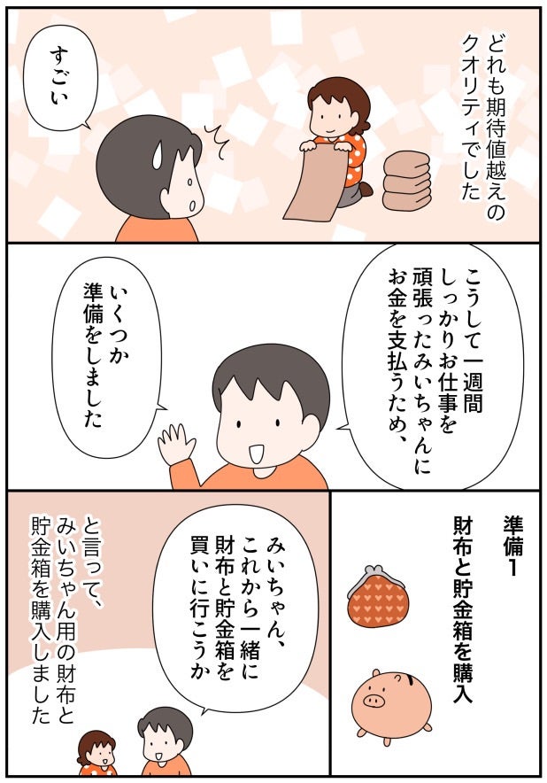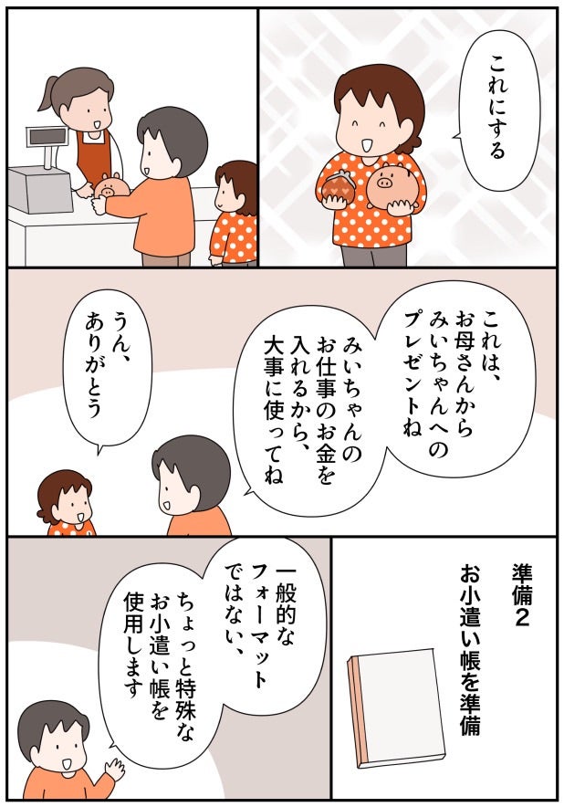 お金の教育③お金の「4つの行き先」とは?(with online) 2022.02.16 子育て いつも読んでいただき、有難うございます。 広告 ↓続きはこちら https://withonline.jp/parenting/emi_ikinuku/WPqds お金の教育③ 〜お金の「4つの行き先」とは?〜 – 共働きwith -講談社公式- 仕事も家庭もわたしらしく 我が家では「週払いの完全報酬制お小遣い制度」をベースに、子どもにお金の教育をしています。今回は、子どもがした「お仕事」の対価として、お金を渡すときのポイントについてご紹介します。キーワードは「4つの行き先」です。お金をただ渡すだけでなく、4つに分けて管理することで、大人になっても困らないお金との付き合い方の基礎が築かれます。withonline.jp 0 コメントはこちら 同じカテゴリの記事 「家族で議論」がおもしろい! たたくなら… 何十年かぶりにプラネタリウムに行ったらとってもよかった話 「痛いの痛いの飛んでいけ」の効果的なやり方 国語の読解問題の採点でモヤモヤした話 その3 国語の読解問題の採点でモヤモヤした話 その2 国語の読解問題の採点でモヤモヤした話 その1 2歳児とお出かけ待ち時間に便利アイテム 心からオススメ!おうち勉強法の本 子どもが小学生になってまず覚えさせたこと 実録!小学生のいる共働き家庭の夏休みの過ごし方 その12 実録!小学生のいる共働き家庭の夏休みの過ごし方 その11 実録!小学生のいる共働き家庭の夏休みの過ごし方 その10 実録!小学生のいる共働き家庭の夏休みの過ごし方 その9 実録!小学生のいる共働き家庭の夏休みの過ごし方 その8 子どもの「ウソ」をやめさせたい!一発で効いた母の一言 実録!小学生のいる共働き家庭の夏休みの過ごし方 その7 実録!小学生のいる共働き家庭の夏休みの過ごし方 その6 実録!小学生のいる共働き家庭の夏休みの過ごし方 その5 小学2年生が1,000円のオムライスセットを販売!本物のお店も経営できる? 実録!小学生のいる共働き家庭の夏休みの過ごし方 その4 実録!小学生のいる共働き家庭の夏休みの過ごし方 その3 実録!小学生のいる共働き家庭の夏休みの過ごし方 その2 実録!小学生のいる共働き家庭の夏休みの過ごし方 その1 小学2年生がカフェに挑戦。ものすごく頑張ったのに利益ご少ない!? 算数とアスパラベーコン 英語を勉強する前に知っておきたかったことを子どもに伝えてみた話 その5 英語を勉強する前に知っておきたかったことを子どもに伝えてみた話 その4 小学2年生が家庭内起業で大儲け!小さな仕事は頑張らなくなる? 英語を勉強する前に知っておきたかったことを子どもに伝えてみた話 その3 英語を勉強する前に知っておきたかったことを子どもに伝えてみた話 その2 英語を勉強する前に知っておきたかったことを子どもに伝えてみた話 その1 家族で漢字検定を受検しました その7 小学2年生の家庭内起業。雇ったアルバイトが途中で逃げ出した!? 家族で漢字検定を受検しました その6 小学2年生が家庭内起業で初めて出した利益は1847円。客も店もみんなハッピーに! 家族で漢字検定を受検しました その5 家族で漢字検定を受検しました その4 家族で漢字検定を受検しました その3 小学2年生のおうち起業。7歳児が2時間半かけて一人で作ったランチが凄かった!(お金の教育26) 家族で漢字検定を受検しました その2 家族で漢字検定を受検しました その1 小学2年生が経営するレストラン。ランチの値段決めが予想以上に難しかった!! 空前の日本史ブーム到来!! 選挙の投票に子ども達と行った話 その4 選挙の投票に子ども達と行った話 その3 選挙の投票に子ども達と行った話 その2 小学2年生の家庭内起業。レストランのランチ価格がとんでもないことに!(お金の教育24) 選挙の投票に子ども達と行った話 その1 小学2年生が家庭内起業!!おうちレストラン、始めました(お金の教育23) 自主学ノートで楽しく学ぼう その5 自主学ノートで楽しく学ぼう その4 自主学ノートで楽しく学ぼう その3 小学2年生がおうちでレストラン経営にチャレンジ!? お金の教育22 自主学ノートで楽しく学ぼう その2 自主学ノートで楽しく学ぼう その1 忙しくてもイライラしても、愛が伝わる「魔法の言葉」(with online) キュンです!2歳児の言い間違い リビングで楽しく学ぶ地理 その3 ワーママ「ここぞ」の朝対応 その4 お金の教育21 学校斡旋の習字セットを買わないことで娘が学んだ「お金の使い方」 ワーママ「ここぞ」の朝対応 その3 ワーママ「ここぞ」の朝対応 その2 ワーママ「ここぞ」の朝対応 その1 お金の教育19 どうする⁉︎子どもの絵の具セット選び…大切なのは「自分で選択すること」だった 我が家のゲーセン事情 その3 我が家のゲーセン事情 その2 我が家のゲーセン事情 その1 お金の教育18 学校で使う絵の具セット「値段は妥当?」「親が買うのが当たり前?」 育休復帰の思わぬ壁 その16 育休復帰の思わぬ壁 その15 育休復帰の思わぬ壁 その14 育休復帰の思わぬ壁 その13 お金の教育17 大人でも難しい⁉︎5歳児が「お金をためて欲しいおもちゃを買う」経験が想像以上に… 育