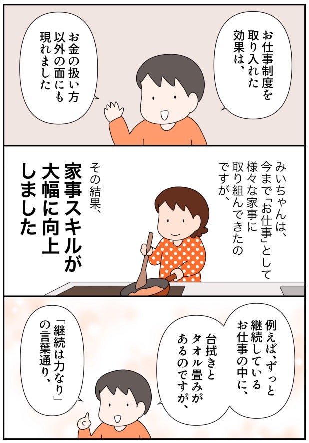 お金の教育⑦ 〜お仕事で家事スキルアップ〜(with online) 2022.03.16 子育て いつも読んでいただき、有難うございます。 広告 ↓続きはこちら お金の教育⑦ 〜お仕事で、家事スキルアップ〜 – 共働きwith -講談社公式- 仕事も家庭もわたしらしく 我が家では「人の役に立つお仕事」として、子どもが積極的に家事に取り組んでいます。その結果、様々な家事を経験することになり、子どもの家事スキルがかなり向上したと思います。お仕事を通してどんな気づきがあり、どのような成長につながったか、ご紹介したいと思います。withonline.jp 0 コメントはこちら 同じカテゴリの記事 「家族で議論」がおもしろい! たたくなら… 何十年かぶりにプラネタリウムに行ったらとってもよかった話 「痛いの痛いの飛んでいけ」の効果的なやり方 国語の読解問題の採点でモヤモヤした話 その3 国語の読解問題の採点でモヤモヤした話 その2 国語の読解問題の採点でモヤモヤした話 その1 2歳児とお出かけ待ち時間に便利アイテム 心からオススメ!おうち勉強法の本 子どもが小学生になってまず覚えさせたこと 実録!小学生のいる共働き家庭の夏休みの過ごし方 その12 実録!小学生のいる共働き家庭の夏休みの過ごし方 その11 実録!小学生のいる共働き家庭の夏休みの過ごし方 その10 実録!小学生のいる共働き家庭の夏休みの過ごし方 その9 実録!小学生のいる共働き家庭の夏休みの過ごし方 その8 子どもの「ウソ」をやめさせたい!一発で効いた母の一言 実録!小学生のいる共働き家庭の夏休みの過ごし方 その7 実録!小学生のいる共働き家庭の夏休みの過ごし方 その6 実録!小学生のいる共働き家庭の夏休みの過ごし方 その5 小学2年生が1,000円のオムライスセットを販売!本物のお店も経営できる? 実録!小学生のいる共働き家庭の夏休みの過ごし方 その4 実録!小学生のいる共働き家庭の夏休みの過ごし方 その3 実録!小学生のいる共働き家庭の夏休みの過ごし方 その2 実録!小学生のいる共働き家庭の夏休みの過ごし方 その1 小学2年生がカフェに挑戦。ものすごく頑張ったのに利益ご少ない!? 算数とアスパラベーコン 英語を勉強する前に知っておきたかったことを子どもに伝えてみた話 その5 英語を勉強する前に知っておきたかったことを子どもに伝えてみた話 その4 小学2年生が家庭内起業で大儲け!小さな仕事は頑張らなくなる? 英語を勉強する前に知っておきたかったことを子どもに伝えてみた話 その3 英語を勉強する前に知っておきたかったことを子どもに伝えてみた話 その2 英語を勉強する前に知っておきたかったことを子どもに伝えてみた話 その1 家族で漢字検定を受検しました その7 小学2年生の家庭内起業。雇ったアルバイトが途中で逃げ出した!? 家族で漢字検定を受検しました その6 小学2年生が家庭内起業で初めて出した利益は1847円。客も店もみんなハッピーに! 家族で漢字検定を受検しました その5 家族で漢字検定を受検しました その4 家族で漢字検定を受検しました その3 小学2年生のおうち起業。7歳児が2時間半かけて一人で作ったランチが凄かった!(お金の教育26) 家族で漢字検定を受検しました その2 家族で漢字検定を受検しました その1 小学2年生が経営するレストラン。ランチの値段決めが予想以上に難しかった!! 空前の日本史ブーム到来!! 選挙の投票に子ども達と行った話 その4 選挙の投票に子ども達と行った話 その3 選挙の投票に子ども達と行った話 その2 小学2年生の家庭内起業。レストランのランチ価格がとんでもないことに!(お金の教育24) 選挙の投票に子ども達と行った話 その1 小学2年生が家庭内起業!!おうちレストラン、始めました(お金の教育23) 自主学ノートで楽しく学ぼう その5 自主学ノートで楽しく学ぼう その4 自主学ノートで楽しく学ぼう その3 小学2年生がおうちでレストラン経営にチャレンジ!? お金の教育22 自主学ノートで楽しく学ぼう その2 自主学ノートで楽しく学ぼう その1 忙しくてもイライラしても、愛が伝わる「魔法の言葉」(with online) キュンです!2歳児の言い間違い リビングで楽しく学ぶ地理 その3 ワーママ「ここぞ」の朝対応 その4 お金の教育21 学校斡旋の習字セットを買わないことで娘が学んだ「お金の使い方」 ワーママ「ここぞ」の朝対応 その3 ワーママ「ここぞ」の朝対応 その2 ワーママ「ここぞ」の朝対応 その1 お金の教育19 どうする⁉︎子どもの絵の具セット選び…大切なのは「自分で選択すること」だった 我が家のゲーセン事情 その3 我が家のゲーセン事情 その2 我が家のゲーセン事情 その1 お金の教育18 学校で使う絵の具セット「値段は妥当?」「親が買うのが当たり前?」 育休復帰の思わぬ壁 その16 育休復帰の思わぬ壁 その15 育休復帰の思わぬ壁 その14 育休復帰の思わぬ壁 その13 お金の教育17 大人でも難しい⁉︎5歳児が「お金をためて欲しいおもちゃを買う」経験が想像以上に… 育休復帰の思わぬ壁 その12 育休復帰の思わぬ壁 その11 育休復帰の思わぬ壁 その10 育休復帰の思わぬ壁 その9 