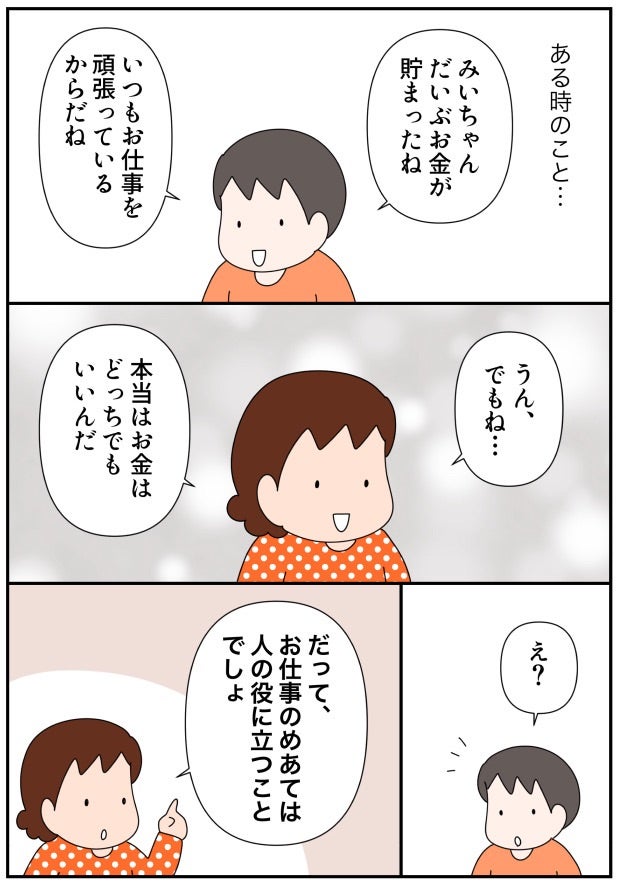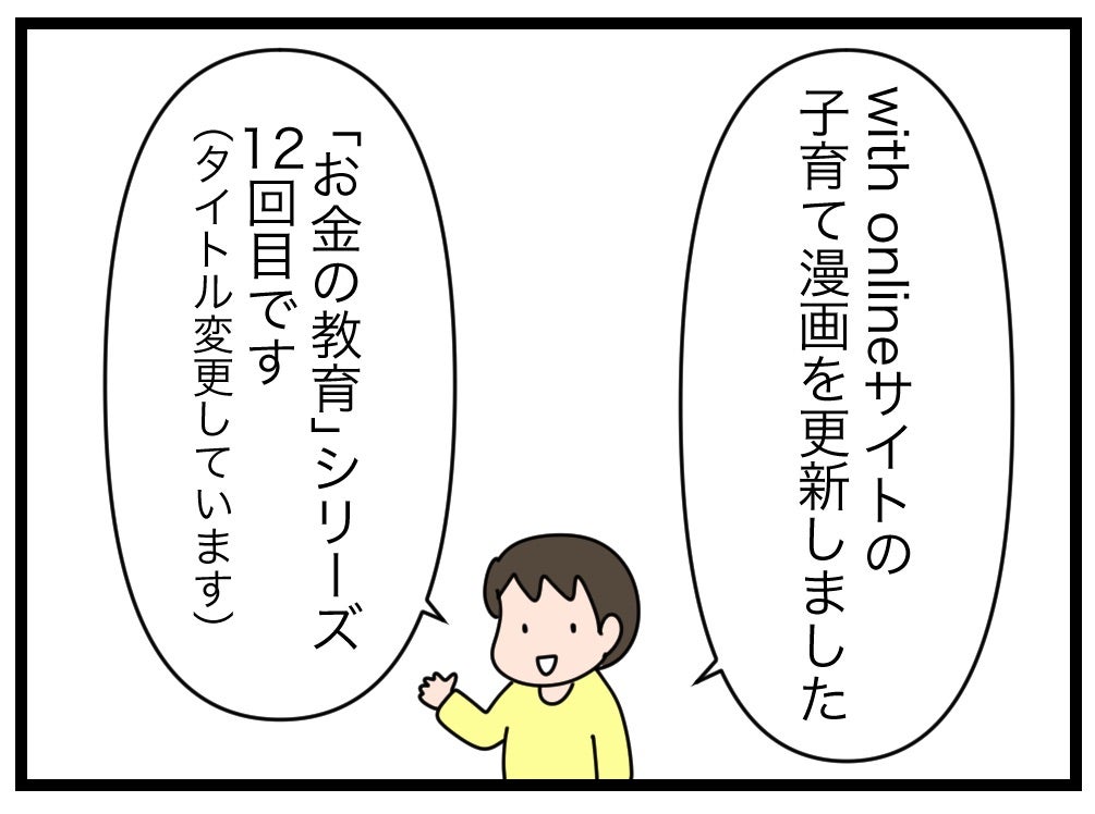 子どもが「主体的」になる、親の関わり方12〜お小遣いとお手伝いで働くことの本質を伝える〜 2022.04.20 子育て いつも読んでいただき、有難うございます。 広告 ↓続きはこちら 子どもが「主体的」になる、親の関わり方~お小遣いとお手伝いで働くことの本質を伝える~ – 共働きwith -講談社公式- 仕事も家庭もわたしらしく 「働くことの本質」って何でしょう?大人になって、日々の仕事に忙殺されていると、そんな大事なことも忘れてしまいそうになります。しかし、「働くこと」の捉え方が変わると、働く姿勢も変わりますし、受け取るお金の見え方も変わってきます。我が家の子ども達が家庭内での「お仕事」を通じて、「働くことの本質」をどのように考えているかご紹介したいと思います。withonline.jp 0 コメントはこちら 同じカテゴリの記事 「家族で議論」がおもしろい! たたくなら… 何十年かぶりにプラネタリウムに行ったらとってもよかった話 「痛いの痛いの飛んでいけ」の効果的なやり方 国語の読解問題の採点でモヤモヤした話 その3 国語の読解問題の採点でモヤモヤした話 その2 国語の読解問題の採点でモヤモヤした話 その1 2歳児とお出かけ待ち時間に便利アイテム 心からオススメ!おうち勉強法の本 子どもが小学生になってまず覚えさせたこと 実録!小学生のいる共働き家庭の夏休みの過ごし方 その12 実録!小学生のいる共働き家庭の夏休みの過ごし方 その11 実録!小学生のいる共働き家庭の夏休みの過ごし方 その10 実録!小学生のいる共働き家庭の夏休みの過ごし方 その9 実録!小学生のいる共働き家庭の夏休みの過ごし方 その8 子どもの「ウソ」をやめさせたい!一発で効いた母の一言 実録!小学生のいる共働き家庭の夏休みの過ごし方 その7 実録!小学生のいる共働き家庭の夏休みの過ごし方 その6 実録!小学生のいる共働き家庭の夏休みの過ごし方 その5 小学2年生が1,000円のオムライスセットを販売!本物のお店も経営できる? 実録!小学生のいる共働き家庭の夏休みの過ごし方 その4 実録!小学生のいる共働き家庭の夏休みの過ごし方 その3 実録!小学生のいる共働き家庭の夏休みの過ごし方 その2 実録!小学生のいる共働き家庭の夏休みの過ごし方 その1 小学2年生がカフェに挑戦。ものすごく頑張ったのに利益ご少ない!? 算数とアスパラベーコン 英語を勉強する前に知っておきたかったことを子どもに伝えてみた話 その5 英語を勉強する前に知っておきたかったことを子どもに伝えてみた話 その4 小学2年生が家庭内起業で大儲け!小さな仕事は頑張らなくなる? 英語を勉強する前に知っておきたかったことを子どもに伝えてみた話 その3 英語を勉強する前に知っておきたかったことを子どもに伝えてみた話 その2 英語を勉強する前に知っておきたかったことを子どもに伝えてみた話 その1 家族で漢字検定を受検しました その7 小学2年生の家庭内起業。雇ったアルバイトが途中で逃げ出した!? 家族で漢字検定を受検しました その6 小学2年生が家庭内起業で初めて出した利益は1847円。客も店もみんなハッピーに! 家族で漢字検定を受検しました その5 家族で漢字検定を受検しました その4 家族で漢字検定を受検しました その3 小学2年生のおうち起業。7歳児が2時間半かけて一人で作ったランチが凄かった!(お金の教育26) 家族で漢字検定を受検しました その2 家族で漢字検定を受検しました その1 小学2年生が経営するレストラン。ランチの値段決めが予想以上に難しかった!! 空前の日本史ブーム到来!! 選挙の投票に子ども達と行った話 その4 選挙の投票に子ども達と行った話 その3 選挙の投票に子ども達と行った話 その2 小学2年生の家庭内起業。レストランのランチ価格がとんでもないことに!(お金の教育24) 選挙の投票に子ども達と行った話 その1 小学2年生が家庭内起業!!おうちレストラン、始めました(お金の教育23) 自主学ノートで楽しく学ぼう その5 自主学ノートで楽しく学ぼう その4 自主学ノートで楽しく学ぼう その3 小学2年生がおうちでレストラン経営にチャレンジ!? お金の教育22 自主学ノートで楽しく学ぼう その2 自主学ノートで楽しく学ぼう その1 忙しくてもイライラしても、愛が伝わる「魔法の言葉」(with online) キュンです!2歳児の言い間違い リビングで楽しく学ぶ地理 その3 ワーママ「ここぞ」の朝対応 その4 お金の教育21 学校斡旋の習字セットを買わないことで娘が学んだ「お金の使い方」 ワーママ「ここぞ」の朝対応 その3 ワーママ「ここぞ」の朝対応 その2 ワーママ「ここぞ」の朝対応 その1 お金の教育19 どうする⁉︎子どもの絵の具セット選び…大切なのは「自分で選択すること」だった 我が家のゲーセン事情 その3 我が家のゲーセン事情 その2 我が家のゲーセン事情 その1 お金の教育18 学校で使う絵の具セット「値段は妥当?」「親が買うのが当たり前?」 育休復帰の思わぬ壁 その16 育休復帰の思わぬ壁 その15 育休復帰の思わぬ壁 その14 育休復帰の思わぬ壁 その13 お金の教育17 大人でも難しい⁉︎5歳