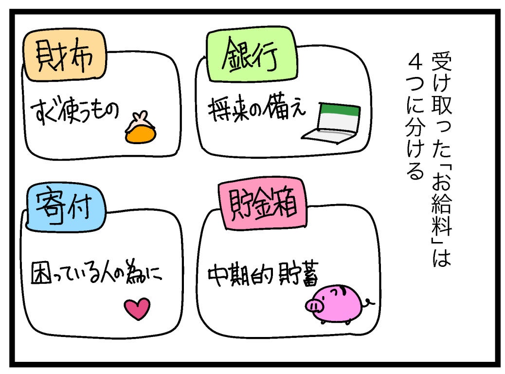「銀行」「貯金箱」「財布」「寄付」