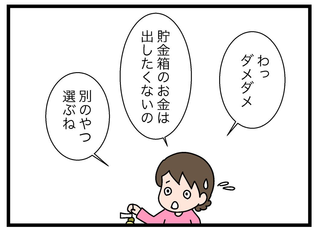 「わっ、ダメダメ。貯金箱のお金は出したくないの。別のやつ選ぶね」