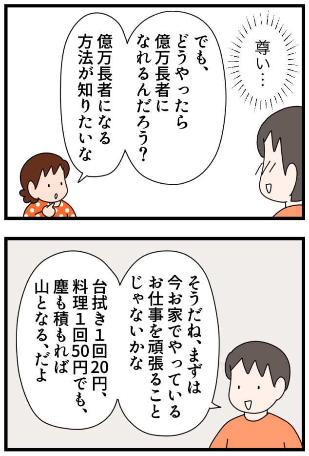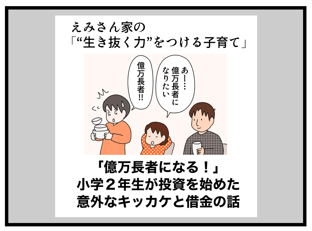 「億万長者になる!」小学2年生が投資を始めた意外なキッカケと借金の話 2022.12.21 with記事 広告 ↓続きはこちら https://withonline.jp/with-class/education/emi_ikinuku/xe3F3 0 コメントはこちら 同じカテゴリの記事 親世代と違う「中学生の壁」がある!?小6のうちにあえて英語を先取りさせている理由とは 母が働くと子どもがかわいそう?フルタイムワーママが実践する、子との良好な関係の築き方 令和の小学生は夏休みの宿題が少なすぎ?任意の課題にも取り組ませた理由とは 小学生の友達付合い。スマホは与える?遊びのお金は?子の成長に繋がる選択とは 子育て中だからって諦めない!忙しくても最短で資格を取得する勉強法とは 子のお小遣いをドル払いにしたら、世界がもっと身近になった! 音読の宿題は、子が「要約力」を身につけ「自分の意見を持つ」機会 子が「気が利く人」になるには、この一言から もう無駄に悩まない!子育ての悩みを解決する鍵は「18歳の子の姿」にあった 「ある言葉」を伝えるだけで、子が自分で朝起きられるように。そのキーワードとは 送迎は無理。でも子の可能性を伸ばしたい!「オンライン習い事」をやってみた結果… 読書習慣は一生モノ!毎日、本を読む5歳児に親がした関わりとは 「あること」をするだけで、子の就寝時間が1時間も早まった!早寝の秘訣とは? 小学校入学前に「これだけはやっていてよかった」たった1つの習慣とは 学童のやめ時はいつ?子だけで留守番する時のルールは?我が家の場合… これぞマネー教育の成果!?お年玉で大金を手にした小学生が取った驚きの行動とは 学びと生活を結びつけて、子の好奇心を刺激する!家庭でできる簡単な工夫とは 子にかかるお金、どうしてる?何を節約して何にお金をかけるのか。我が家の場合… お年玉はお金の教育のチャンス!3年投資を続けた小5娘のお金の使い方とは 3人の子が、それぞれ充実した休日を過ごせる! 我が家の簡単ルールとは? 宿題を学校でやるのはOK?それともダメ?教育現場に見えた課題とは 子がダラダラ漫画を読むのをやめ、+αで頑張るようになった経緯とは 子の自立に必須なのが家事スキル!小学生がそれを身につけた方法とは 夫婦のすれ違いの原因は「言葉の解釈の違い」にあり!?相手を理解するのに必要なこととは 地頭が鍛えられる!幼児におすすめのボードゲーム3選 4歳児がお金を稼いで買い物に!?子の「あれ買って」はお金の教育を始めるチャンス 子供達だけで電車に乗せたら乗り換えに失敗!そのとき子供がとった行動は 無人島から帰ってきた子ども達に衝撃の変化が!夏休みの「挑戦」で得られた子の成長 子にマナーもビジネス感覚も教えるチャンス!外食の最大活用法とは 子の進路どうする?大学受験せずに進学できる方が幸せ?我が家の考えは 図鑑って必要?家に図鑑を置いたら子の能力が最大限引き出された話 子が充実した夏休みを送れるかのカギは「挑戦」と「成長」にあり 賢い子に育てたいなら「家族でボードゲーム」がおすすめの理由 子が小学校入学後スムーズに自立するか否かは、年長までの親の関わりで決まる! 最近、小学校が激変している! 一方で昔のやり方を謎に残す部分も…。令和の小学校の驚きの実態とは 子がゲームやYouTubeとほどよい距離感で付き合えるようになる3つのポイント 子が10歳までに身につけておいて本当によかった習慣ベスト5 「ちゃんと夫婦で話したいのに…」という時に効果あり!男性と会話する際の3つのポイントとは 夫に話しかけてもまともに会話にならない。その原因は、太古の「焚き火」にあった!? 家のことに無関心で協力しない夫。その意識を変える秘策とは 「俺は家族のために頑張ってる」「あなたは何もしてくれない」このすれ違いを生む男女の違いとは 家事も子育てもしない夫。実は男女の結婚観の違いに原因があった!? 子が自分の考えをうまく伝える力をつけるため、我が家が取り組んでいること 育休復帰後「時短勤務は中途半端だ」と悩んでいた時に救われた言葉とは 「授業がつまらない」を「勉強がつまらない」にしないために、家庭で取り組んだこととは ポテチ700円?水500円!?小学生の子供たちですら将来を考え直した、海外旅行での経験の衝撃度 親も子も、ついダラダラしがちな休日。休み明けに後悔しないための3つのルールとは 忙しいママの最強お役立ちアイテム!スマートスピーカーの子育て活用術とは 子どもが突然の発熱!?共働きで3児を育てる親が「まさか」に備えて実践している「3つの事前準備」 子供を保育園に預けて本当に大丈夫?保育園児の親が気をつけるべきたった一つのこと 初めての子供部屋。いいスタートのために親ができること 家の手伝いは工夫次第で「子どもの主体性を育む育児」になる! 最適なのは意外に難しい「食事の〇〇」 「親にやらされる」より「子が自分で目標を決める」方が圧倒的に頑張れる!結果が見える仕組みの作り方 しりとりに飽きたらこれ!子供も親も大爆笑の「新・言葉遊び」で遊びながらぐんぐん賢くなる方法と