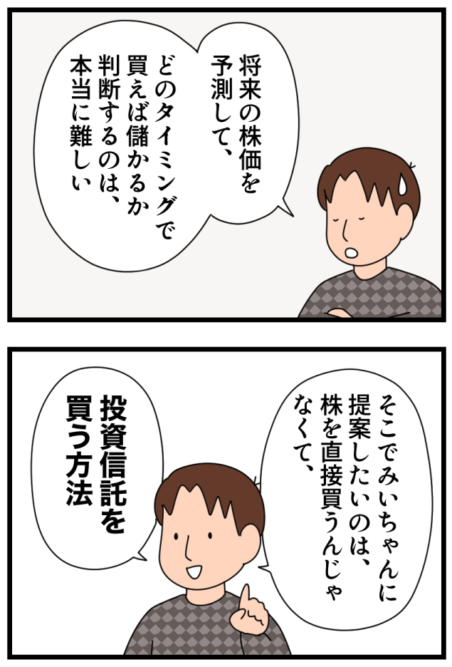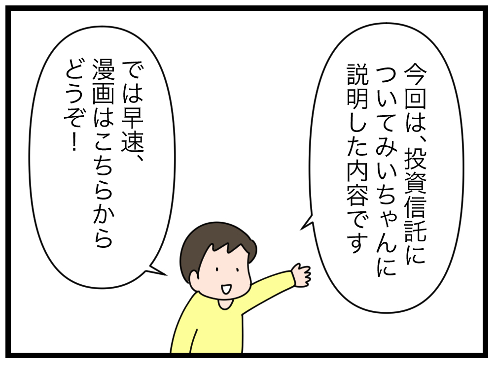 初心者でも大丈夫!小学2年生に投資信託をオススメする理由 2023.01.11 with記事 広告 ↓続きはこちら https://withonline.jp/with-class/education/emi_ikinuku/Qccyj 0 コメントはこちら 同じカテゴリの記事 親世代と違う「中学生の壁」がある!?小6のうちにあえて英語を先取りさせている理由とは 母が働くと子どもがかわいそう?フルタイムワーママが実践する、子との良好な関係の築き方 令和の小学生は夏休みの宿題が少なすぎ?任意の課題にも取り組ませた理由とは 小学生の友達付合い。スマホは与える?遊びのお金は?子の成長に繋がる選択とは 子育て中だからって諦めない!忙しくても最短で資格を取得する勉強法とは 子のお小遣いをドル払いにしたら、世界がもっと身近になった! 音読の宿題は、子が「要約力」を身につけ「自分の意見を持つ」機会 子が「気が利く人」になるには、この一言から もう無駄に悩まない!子育ての悩みを解決する鍵は「18歳の子の姿」にあった 「ある言葉」を伝えるだけで、子が自分で朝起きられるように。そのキーワードとは 送迎は無理。でも子の可能性を伸ばしたい!「オンライン習い事」をやってみた結果… 読書習慣は一生モノ!毎日、本を読む5歳児に親がした関わりとは 「あること」をするだけで、子の就寝時間が1時間も早まった!早寝の秘訣とは? 小学校入学前に「これだけはやっていてよかった」たった1つの習慣とは 学童のやめ時はいつ?子だけで留守番する時のルールは?我が家の場合… これぞマネー教育の成果!?お年玉で大金を手にした小学生が取った驚きの行動とは 学びと生活を結びつけて、子の好奇心を刺激する!家庭でできる簡単な工夫とは 子にかかるお金、どうしてる?何を節約して何にお金をかけるのか。我が家の場合… お年玉はお金の教育のチャンス!3年投資を続けた小5娘のお金の使い方とは 3人の子が、それぞれ充実した休日を過ごせる! 我が家の簡単ルールとは? 宿題を学校でやるのはOK?それともダメ?教育現場に見えた課題とは 子がダラダラ漫画を読むのをやめ、+αで頑張るようになった経緯とは 子の自立に必須なのが家事スキル!小学生がそれを身につけた方法とは 夫婦のすれ違いの原因は「言葉の解釈の違い」にあり!?相手を理解するのに必要なこととは 地頭が鍛えられる!幼児におすすめのボードゲーム3選 4歳児がお金を稼いで買い物に!?子の「あれ買って」はお金の教育を始めるチャンス 子供達だけで電車に乗せたら乗り換えに失敗!そのとき子供がとった行動は 無人島から帰ってきた子ども達に衝撃の変化が!夏休みの「挑戦」で得られた子の成長 子にマナーもビジネス感覚も教えるチャンス!外食の最大活用法とは 子の進路どうする?大学受験せずに進学できる方が幸せ?我が家の考えは 図鑑って必要?家に図鑑を置いたら子の能力が最大限引き出された話 子が充実した夏休みを送れるかのカギは「挑戦」と「成長」にあり 賢い子に育てたいなら「家族でボードゲーム」がおすすめの理由 子が小学校入学後スムーズに自立するか否かは、年長までの親の関わりで決まる! 最近、小学校が激変している! 一方で昔のやり方を謎に残す部分も…。令和の小学校の驚きの実態とは 子がゲームやYouTubeとほどよい距離感で付き合えるようになる3つのポイント 子が10歳までに身につけておいて本当によかった習慣ベスト5 「ちゃんと夫婦で話したいのに…」という時に効果あり!男性と会話する際の3つのポイントとは 夫に話しかけてもまともに会話にならない。その原因は、太古の「焚き火」にあった!? 家のことに無関心で協力しない夫。その意識を変える秘策とは 「俺は家族のために頑張ってる」「あなたは何もしてくれない」このすれ違いを生む男女の違いとは 家事も子育てもしない夫。実は男女の結婚観の違いに原因があった!? 子が自分の考えをうまく伝える力をつけるため、我が家が取り組んでいること 育休復帰後「時短勤務は中途半端だ」と悩んでいた時に救われた言葉とは 「授業がつまらない」を「勉強がつまらない」にしないために、家庭で取り組んだこととは ポテチ700円?水500円!?小学生の子供たちですら将来を考え直した、海外旅行での経験の衝撃度 親も子も、ついダラダラしがちな休日。休み明けに後悔しないための3つのルールとは 忙しいママの最強お役立ちアイテム!スマートスピーカーの子育て活用術とは 子どもが突然の発熱!?共働きで3児を育てる親が「まさか」に備えて実践している「3つの事前準備」 子供を保育園に預けて本当に大丈夫?保育園児の親が気をつけるべきたった一つのこと 初めての子供部屋。いいスタートのために親ができること 家の手伝いは工夫次第で「子どもの主体性を育む育児」になる! 最適なのは意外に難しい「食事の〇〇」 「親にやらされる」より「子が自分で目標を決める」方が圧倒的に頑張れる!結果が見える仕組みの作り方 しりとりに飽きたらこれ!子供も親も大爆笑の「新・言葉遊び」で遊びながらぐんぐん賢くなる方法とは 我が子と留