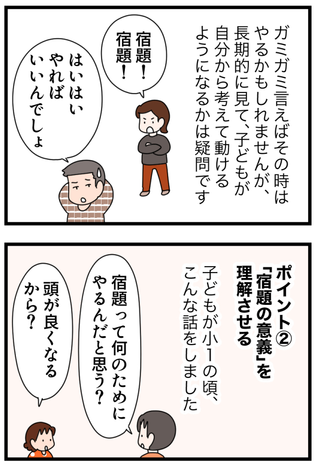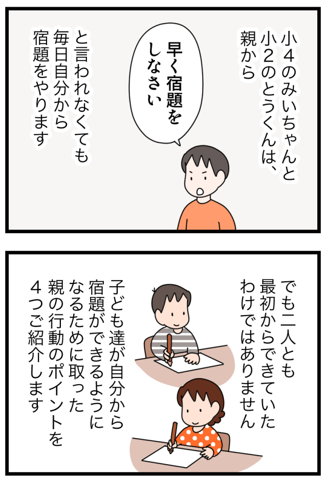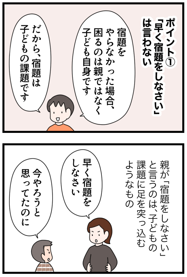 親がガミガミ言わなくても、子どもが自分から宿題ができるようになる「4つのポイント」 2023.05.18 with記事 広告 ↓続きはこちらから https://withonline.jp/with-class/education/emi_ikinuku/L6892 0 コメントはこちら 同じカテゴリの記事 親世代と違う「中学生の壁」がある!?小6のうちにあえて英語を先取りさせている理由とは 母が働くと子どもがかわいそう?フルタイムワーママが実践する、子との良好な関係の築き方 令和の小学生は夏休みの宿題が少なすぎ?任意の課題にも取り組ませた理由とは 小学生の友達付合い。スマホは与える?遊びのお金は?子の成長に繋がる選択とは 子育て中だからって諦めない!忙しくても最短で資格を取得する勉強法とは 子のお小遣いをドル払いにしたら、世界がもっと身近になった! 音読の宿題は、子が「要約力」を身につけ「自分の意見を持つ」機会 子が「気が利く人」になるには、この一言から もう無駄に悩まない!子育ての悩みを解決する鍵は「18歳の子の姿」にあった 「ある言葉」を伝えるだけで、子が自分で朝起きられるように。そのキーワードとは 送迎は無理。でも子の可能性を伸ばしたい!「オンライン習い事」をやってみた結果… 読書習慣は一生モノ!毎日、本を読む5歳児に親がした関わりとは 「あること」をするだけで、子の就寝時間が1時間も早まった!早寝の秘訣とは? 小学校入学前に「これだけはやっていてよかった」たった1つの習慣とは 学童のやめ時はいつ?子だけで留守番する時のルールは?我が家の場合… これぞマネー教育の成果!?お年玉で大金を手にした小学生が取った驚きの行動とは 学びと生活を結びつけて、子の好奇心を刺激する!家庭でできる簡単な工夫とは 子にかかるお金、どうしてる?何を節約して何にお金をかけるのか。我が家の場合… お年玉はお金の教育のチャンス!3年投資を続けた小5娘のお金の使い方とは 3人の子が、それぞれ充実した休日を過ごせる! 我が家の簡単ルールとは? 宿題を学校でやるのはOK?それともダメ?教育現場に見えた課題とは 子がダラダラ漫画を読むのをやめ、+αで頑張るようになった経緯とは 子の自立に必須なのが家事スキル!小学生がそれを身につけた方法とは 夫婦のすれ違いの原因は「言葉の解釈の違い」にあり!?相手を理解するのに必要なこととは 地頭が鍛えられる!幼児におすすめのボードゲーム3選 4歳児がお金を稼いで買い物に!?子の「あれ買って」はお金の教育を始めるチャンス 子供達だけで電車に乗せたら乗り換えに失敗!そのとき子供がとった行動は 無人島から帰ってきた子ども達に衝撃の変化が!夏休みの「挑戦」で得られた子の成長 子にマナーもビジネス感覚も教えるチャンス!外食の最大活用法とは 子の進路どうする?大学受験せずに進学できる方が幸せ?我が家の考えは 図鑑って必要?家に図鑑を置いたら子の能力が最大限引き出された話 子が充実した夏休みを送れるかのカギは「挑戦」と「成長」にあり 賢い子に育てたいなら「家族でボードゲーム」がおすすめの理由 子が小学校入学後スムーズに自立するか否かは、年長までの親の関わりで決まる! 最近、小学校が激変している! 一方で昔のやり方を謎に残す部分も…。令和の小学校の驚きの実態とは 子がゲームやYouTubeとほどよい距離感で付き合えるようになる3つのポイント 子が10歳までに身につけておいて本当によかった習慣ベスト5 「ちゃんと夫婦で話したいのに…」という時に効果あり!男性と会話する際の3つのポイントとは 夫に話しかけてもまともに会話にならない。その原因は、太古の「焚き火」にあった!? 家のことに無関心で協力しない夫。その意識を変える秘策とは 「俺は家族のために頑張ってる」「あなたは何もしてくれない」このすれ違いを生む男女の違いとは 家事も子育てもしない夫。実は男女の結婚観の違いに原因があった!? 子が自分の考えをうまく伝える力をつけるため、我が家が取り組んでいること 育休復帰後「時短勤務は中途半端だ」と悩んでいた時に救われた言葉とは 「授業がつまらない」を「勉強がつまらない」にしないために、家庭で取り組んだこととは ポテチ700円?水500円!?小学生の子供たちですら将来を考え直した、海外旅行での経験の衝撃度 親も子も、ついダラダラしがちな休日。休み明けに後悔しないための3つのルールとは 忙しいママの最強お役立ちアイテム!スマートスピーカーの子育て活用術とは 子どもが突然の発熱!?共働きで3児を育てる親が「まさか」に備えて実践している「3つの事前準備」 子供を保育園に預けて本当に大丈夫?保育園児の親が気をつけるべきたった一つのこと 初めての子供部屋。いいスタートのために親ができること 家の手伝いは工夫次第で「子どもの主体性を育む育児」になる! 最適なのは意外に難しい「食事の〇〇」 「親にやらされる」より「子が自分で目標を決める」方が圧倒的に頑張れる!結果が見える仕組みの作り方 しりとりに飽きたらこれ!子供も親も大爆笑の「新・言葉遊び」で遊びながらぐん