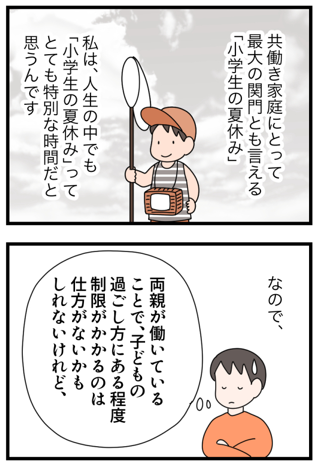 小学生の夏休みは共働き最大の壁?親が忙しくても、子が充実した夏休みを過ごせる8つのアイデア 2023.05.31 with記事 広告 ↓続きはこちらから https://withonline.jp/with-class/education/emi_ikinuku/tBUsF 0 コメントはこちら 同じカテゴリの記事 親世代と違う「中学生の壁」がある!?小6のうちにあえて英語を先取りさせている理由とは 母が働くと子どもがかわいそう?フルタイムワーママが実践する、子との良好な関係の築き方 令和の小学生は夏休みの宿題が少なすぎ?任意の課題にも取り組ませた理由とは 小学生の友達付合い。スマホは与える?遊びのお金は?子の成長に繋がる選択とは 子育て中だからって諦めない!忙しくても最短で資格を取得する勉強法とは 子のお小遣いをドル払いにしたら、世界がもっと身近になった! 音読の宿題は、子が「要約力」を身につけ「自分の意見を持つ」機会 子が「気が利く人」になるには、この一言から もう無駄に悩まない!子育ての悩みを解決する鍵は「18歳の子の姿」にあった 「ある言葉」を伝えるだけで、子が自分で朝起きられるように。そのキーワードとは 送迎は無理。でも子の可能性を伸ばしたい!「オンライン習い事」をやってみた結果… 読書習慣は一生モノ!毎日、本を読む5歳児に親がした関わりとは 「あること」をするだけで、子の就寝時間が1時間も早まった!早寝の秘訣とは? 小学校入学前に「これだけはやっていてよかった」たった1つの習慣とは 学童のやめ時はいつ?子だけで留守番する時のルールは?我が家の場合… これぞマネー教育の成果!?お年玉で大金を手にした小学生が取った驚きの行動とは 学びと生活を結びつけて、子の好奇心を刺激する!家庭でできる簡単な工夫とは 子にかかるお金、どうしてる?何を節約して何にお金をかけるのか。我が家の場合… お年玉はお金の教育のチャンス!3年投資を続けた小5娘のお金の使い方とは 3人の子が、それぞれ充実した休日を過ごせる! 我が家の簡単ルールとは? 宿題を学校でやるのはOK?それともダメ?教育現場に見えた課題とは 子がダラダラ漫画を読むのをやめ、+αで頑張るようになった経緯とは 子の自立に必須なのが家事スキル!小学生がそれを身につけた方法とは 夫婦のすれ違いの原因は「言葉の解釈の違い」にあり!?相手を理解するのに必要なこととは 地頭が鍛えられる!幼児におすすめのボードゲーム3選 4歳児がお金を稼いで買い物に!?子の「あれ買って」はお金の教育を始めるチャンス 子供達だけで電車に乗せたら乗り換えに失敗!そのとき子供がとった行動は 無人島から帰ってきた子ども達に衝撃の変化が!夏休みの「挑戦」で得られた子の成長 子にマナーもビジネス感覚も教えるチャンス!外食の最大活用法とは 子の進路どうする?大学受験せずに進学できる方が幸せ?我が家の考えは 図鑑って必要?家に図鑑を置いたら子の能力が最大限引き出された話 子が充実した夏休みを送れるかのカギは「挑戦」と「成長」にあり 賢い子に育てたいなら「家族でボードゲーム」がおすすめの理由 子が小学校入学後スムーズに自立するか否かは、年長までの親の関わりで決まる! 最近、小学校が激変している! 一方で昔のやり方を謎に残す部分も…。令和の小学校の驚きの実態とは 子がゲームやYouTubeとほどよい距離感で付き合えるようになる3つのポイント 子が10歳までに身につけておいて本当によかった習慣ベスト5 「ちゃんと夫婦で話したいのに…」という時に効果あり!男性と会話する際の3つのポイントとは 夫に話しかけてもまともに会話にならない。その原因は、太古の「焚き火」にあった!? 家のことに無関心で協力しない夫。その意識を変える秘策とは 「俺は家族のために頑張ってる」「あなたは何もしてくれない」このすれ違いを生む男女の違いとは 家事も子育てもしない夫。実は男女の結婚観の違いに原因があった!? 子が自分の考えをうまく伝える力をつけるため、我が家が取り組んでいること 育休復帰後「時短勤務は中途半端だ」と悩んでいた時に救われた言葉とは 「授業がつまらない」を「勉強がつまらない」にしないために、家庭で取り組んだこととは ポテチ700円?水500円!?小学生の子供たちですら将来を考え直した、海外旅行での経験の衝撃度 親も子も、ついダラダラしがちな休日。休み明けに後悔しないための3つのルールとは 忙しいママの最強お役立ちアイテム!スマートスピーカーの子育て活用術とは 子どもが突然の発熱!?共働きで3児を育てる親が「まさか」に備えて実践している「3つの事前準備」 子供を保育園に預けて本当に大丈夫?保育園児の親が気をつけるべきたった一つのこと 初めての子供部屋。いいスタートのために親ができること 家の手伝いは工夫次第で「子どもの主体性を育む育児」になる! 最適なのは意外に難しい「食事の〇〇」 「親にやらされる」より「子が自分で目標を決める」方が圧倒的に頑張れる!結果が見える仕組みの作り方 しりとりに飽きたらこれ!子供も親も大爆笑の「新・言葉遊び」で遊びな