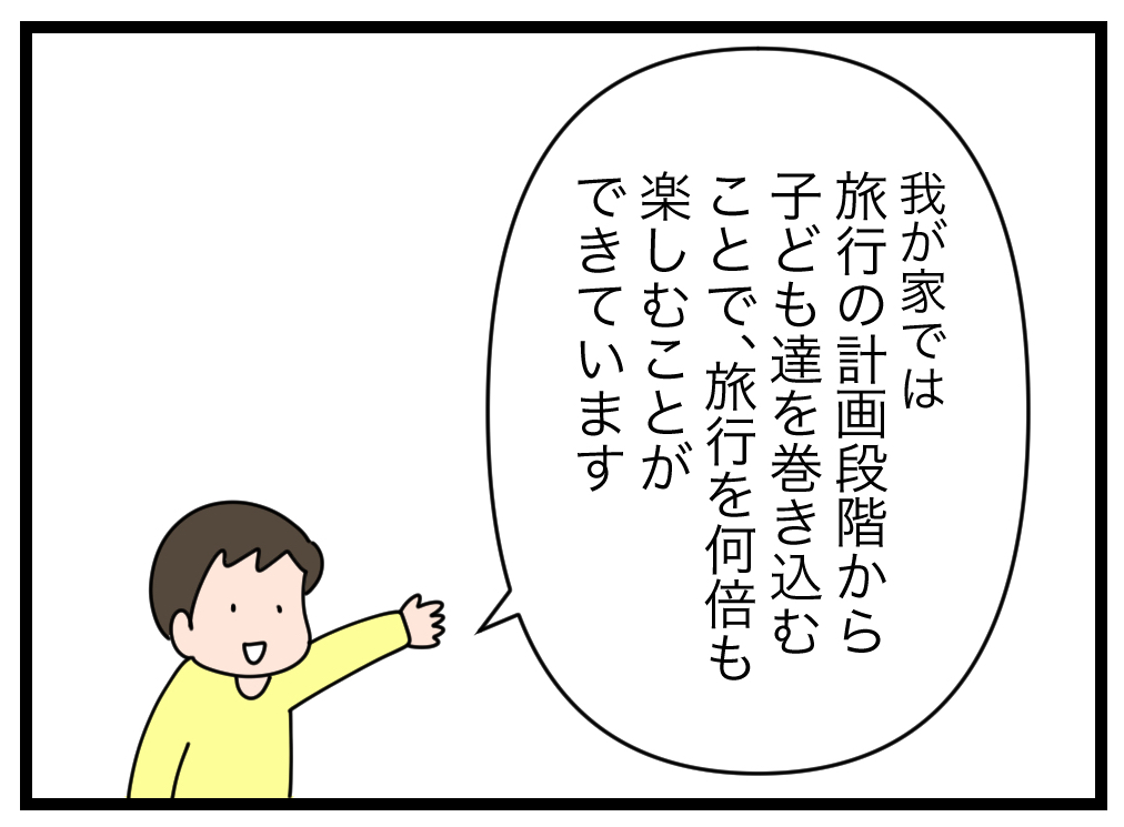 家族旅行は計画段階から子どもと一緒に! 「親に連れられる旅」が「主体的な旅」に変わる凄い効果 2023.06.07 with記事 広告 ↓続きはこちらから https://withonline.jp/with-class/education/emi_ikinuku/EEduu 0 コメントはこちら 同じカテゴリの記事 親世代と違う「中学生の壁」がある!?小6のうちにあえて英語を先取りさせている理由とは 母が働くと子どもがかわいそう?フルタイムワーママが実践する、子との良好な関係の築き方 令和の小学生は夏休みの宿題が少なすぎ?任意の課題にも取り組ませた理由とは 小学生の友達付合い。スマホは与える?遊びのお金は?子の成長に繋がる選択とは 子育て中だからって諦めない!忙しくても最短で資格を取得する勉強法とは 子のお小遣いをドル払いにしたら、世界がもっと身近になった! 音読の宿題は、子が「要約力」を身につけ「自分の意見を持つ」機会 子が「気が利く人」になるには、この一言から もう無駄に悩まない!子育ての悩みを解決する鍵は「18歳の子の姿」にあった 「ある言葉」を伝えるだけで、子が自分で朝起きられるように。そのキーワードとは 送迎は無理。でも子の可能性を伸ばしたい!「オンライン習い事」をやってみた結果… 読書習慣は一生モノ!毎日、本を読む5歳児に親がした関わりとは 「あること」をするだけで、子の就寝時間が1時間も早まった!早寝の秘訣とは? 小学校入学前に「これだけはやっていてよかった」たった1つの習慣とは 学童のやめ時はいつ?子だけで留守番する時のルールは?我が家の場合… これぞマネー教育の成果!?お年玉で大金を手にした小学生が取った驚きの行動とは 学びと生活を結びつけて、子の好奇心を刺激する!家庭でできる簡単な工夫とは 子にかかるお金、どうしてる?何を節約して何にお金をかけるのか。我が家の場合… お年玉はお金の教育のチャンス!3年投資を続けた小5娘のお金の使い方とは 3人の子が、それぞれ充実した休日を過ごせる! 我が家の簡単ルールとは? 宿題を学校でやるのはOK?それともダメ?教育現場に見えた課題とは 子がダラダラ漫画を読むのをやめ、+αで頑張るようになった経緯とは 子の自立に必須なのが家事スキル!小学生がそれを身につけた方法とは 夫婦のすれ違いの原因は「言葉の解釈の違い」にあり!?相手を理解するのに必要なこととは 地頭が鍛えられる!幼児におすすめのボードゲーム3選 4歳児がお金を稼いで買い物に!?子の「あれ買って」はお金の教育を始めるチャンス 子供達だけで電車に乗せたら乗り換えに失敗!そのとき子供がとった行動は 無人島から帰ってきた子ども達に衝撃の変化が!夏休みの「挑戦」で得られた子の成長 子にマナーもビジネス感覚も教えるチャンス!外食の最大活用法とは 子の進路どうする?大学受験せずに進学できる方が幸せ?我が家の考えは 図鑑って必要?家に図鑑を置いたら子の能力が最大限引き出された話 子が充実した夏休みを送れるかのカギは「挑戦」と「成長」にあり 賢い子に育てたいなら「家族でボードゲーム」がおすすめの理由 子が小学校入学後スムーズに自立するか否かは、年長までの親の関わりで決まる! 最近、小学校が激変している! 一方で昔のやり方を謎に残す部分も…。令和の小学校の驚きの実態とは 子がゲームやYouTubeとほどよい距離感で付き合えるようになる3つのポイント 子が10歳までに身につけておいて本当によかった習慣ベスト5 「ちゃんと夫婦で話したいのに…」という時に効果あり!男性と会話する際の3つのポイントとは 夫に話しかけてもまともに会話にならない。その原因は、太古の「焚き火」にあった!? 家のことに無関心で協力しない夫。その意識を変える秘策とは 「俺は家族のために頑張ってる」「あなたは何もしてくれない」このすれ違いを生む男女の違いとは 家事も子育てもしない夫。実は男女の結婚観の違いに原因があった!? 子が自分の考えをうまく伝える力をつけるため、我が家が取り組んでいること 育休復帰後「時短勤務は中途半端だ」と悩んでいた時に救われた言葉とは 「授業がつまらない」を「勉強がつまらない」にしないために、家庭で取り組んだこととは ポテチ700円?水500円!?小学生の子供たちですら将来を考え直した、海外旅行での経験の衝撃度 親も子も、ついダラダラしがちな休日。休み明けに後悔しないための3つのルールとは 忙しいママの最強お役立ちアイテム!スマートスピーカーの子育て活用術とは 子どもが突然の発熱!?共働きで3児を育てる親が「まさか」に備えて実践している「3つの事前準備」 子供を保育園に預けて本当に大丈夫?保育園児の親が気をつけるべきたった一つのこと 初めての子供部屋。いいスタートのために親ができること 家の手伝いは工夫次第で「子どもの主体性を育む育児」になる! 最適なのは意外に難しい「食事の〇〇」 「親にやらされる」より「子が自分で目標を決める」方が圧倒的に頑張れる!結果が見える仕組みの作り方 しりとりに飽きたらこれ!子供も親も大爆笑の「新・言葉遊び」で遊び