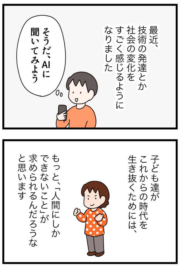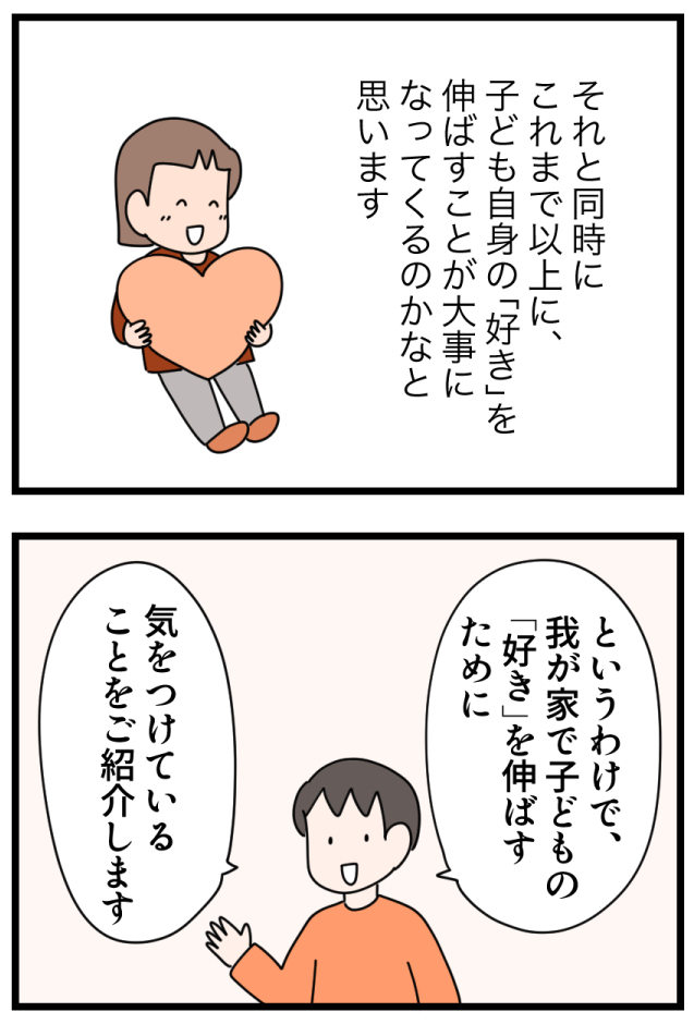 子どもの「好き」を伸ばしたいけど、何が好きかも分からない!?好奇心を伸ばす親がやった4つのこと 2023.11.15 with記事 広告 ↓続きはこちら https://withonline.jp/with-class/education/emi_ikinuku/FsGUa 0 コメントはこちら 同じカテゴリの記事 親世代と違う「中学生の壁」がある!?小6のうちにあえて英語を先取りさせている理由とは 母が働くと子どもがかわいそう?フルタイムワーママが実践する、子との良好な関係の築き方 令和の小学生は夏休みの宿題が少なすぎ?任意の課題にも取り組ませた理由とは 小学生の友達付合い。スマホは与える?遊びのお金は?子の成長に繋がる選択とは 子育て中だからって諦めない!忙しくても最短で資格を取得する勉強法とは 子のお小遣いをドル払いにしたら、世界がもっと身近になった! 音読の宿題は、子が「要約力」を身につけ「自分の意見を持つ」機会 子が「気が利く人」になるには、この一言から もう無駄に悩まない!子育ての悩みを解決する鍵は「18歳の子の姿」にあった 「ある言葉」を伝えるだけで、子が自分で朝起きられるように。そのキーワードとは 送迎は無理。でも子の可能性を伸ばしたい!「オンライン習い事」をやってみた結果… 読書習慣は一生モノ!毎日、本を読む5歳児に親がした関わりとは 「あること」をするだけで、子の就寝時間が1時間も早まった!早寝の秘訣とは? 小学校入学前に「これだけはやっていてよかった」たった1つの習慣とは 学童のやめ時はいつ?子だけで留守番する時のルールは?我が家の場合… これぞマネー教育の成果!?お年玉で大金を手にした小学生が取った驚きの行動とは 学びと生活を結びつけて、子の好奇心を刺激する!家庭でできる簡単な工夫とは 子にかかるお金、どうしてる?何を節約して何にお金をかけるのか。我が家の場合… お年玉はお金の教育のチャンス!3年投資を続けた小5娘のお金の使い方とは 3人の子が、それぞれ充実した休日を過ごせる! 我が家の簡単ルールとは? 宿題を学校でやるのはOK?それともダメ?教育現場に見えた課題とは 子がダラダラ漫画を読むのをやめ、+αで頑張るようになった経緯とは 子の自立に必須なのが家事スキル!小学生がそれを身につけた方法とは 夫婦のすれ違いの原因は「言葉の解釈の違い」にあり!?相手を理解するのに必要なこととは 地頭が鍛えられる!幼児におすすめのボードゲーム3選 4歳児がお金を稼いで買い物に!?子の「あれ買って」はお金の教育を始めるチャンス 子供達だけで電車に乗せたら乗り換えに失敗!そのとき子供がとった行動は 無人島から帰ってきた子ども達に衝撃の変化が!夏休みの「挑戦」で得られた子の成長 子にマナーもビジネス感覚も教えるチャンス!外食の最大活用法とは 子の進路どうする?大学受験せずに進学できる方が幸せ?我が家の考えは 図鑑って必要?家に図鑑を置いたら子の能力が最大限引き出された話 子が充実した夏休みを送れるかのカギは「挑戦」と「成長」にあり 賢い子に育てたいなら「家族でボードゲーム」がおすすめの理由 子が小学校入学後スムーズに自立するか否かは、年長までの親の関わりで決まる! 最近、小学校が激変している! 一方で昔のやり方を謎に残す部分も…。令和の小学校の驚きの実態とは 子がゲームやYouTubeとほどよい距離感で付き合えるようになる3つのポイント 子が10歳までに身につけておいて本当によかった習慣ベスト5 「ちゃんと夫婦で話したいのに…」という時に効果あり!男性と会話する際の3つのポイントとは 夫に話しかけてもまともに会話にならない。その原因は、太古の「焚き火」にあった!? 家のことに無関心で協力しない夫。その意識を変える秘策とは 「俺は家族のために頑張ってる」「あなたは何もしてくれない」このすれ違いを生む男女の違いとは 家事も子育てもしない夫。実は男女の結婚観の違いに原因があった!? 子が自分の考えをうまく伝える力をつけるため、我が家が取り組んでいること 育休復帰後「時短勤務は中途半端だ」と悩んでいた時に救われた言葉とは 「授業がつまらない」を「勉強がつまらない」にしないために、家庭で取り組んだこととは ポテチ700円?水500円!?小学生の子供たちですら将来を考え直した、海外旅行での経験の衝撃度 親も子も、ついダラダラしがちな休日。休み明けに後悔しないための3つのルールとは 忙しいママの最強お役立ちアイテム!スマートスピーカーの子育て活用術とは 子どもが突然の発熱!?共働きで3児を育てる親が「まさか」に備えて実践している「3つの事前準備」 子供を保育園に預けて本当に大丈夫?保育園児の親が気をつけるべきたった一つのこと 初めての子供部屋。いいスタートのために親ができること 家の手伝いは工夫次第で「子どもの主体性を育む育児」になる! 最適なのは意外に難しい「食事の〇〇」 「親にやらされる」より「子が自分で目標を決める」方が圧倒的に頑張れる!結果が見える仕組みの作り方 しりとりに飽きたらこれ!子供も親も大爆笑の「新・言葉遊び」で遊びなが